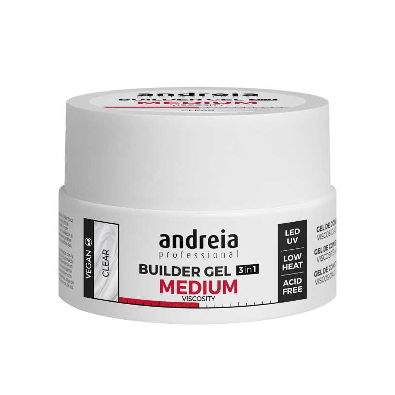 Il Gel Costruttore 3 in 1 viscosità media Andreia Professionista è un gel di costruzione. Può anche essere usato come strato di base o di finitura.