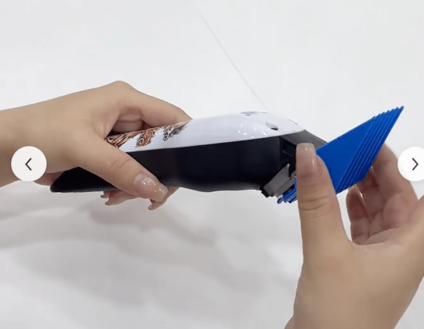 - Un breve clic conferma il corretto aggancio del pettine al set di taglio