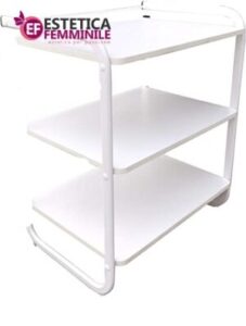 Pratico carrello per centro estetico con struttura metallica verniciata di bianco, 3 ripiani bianchi