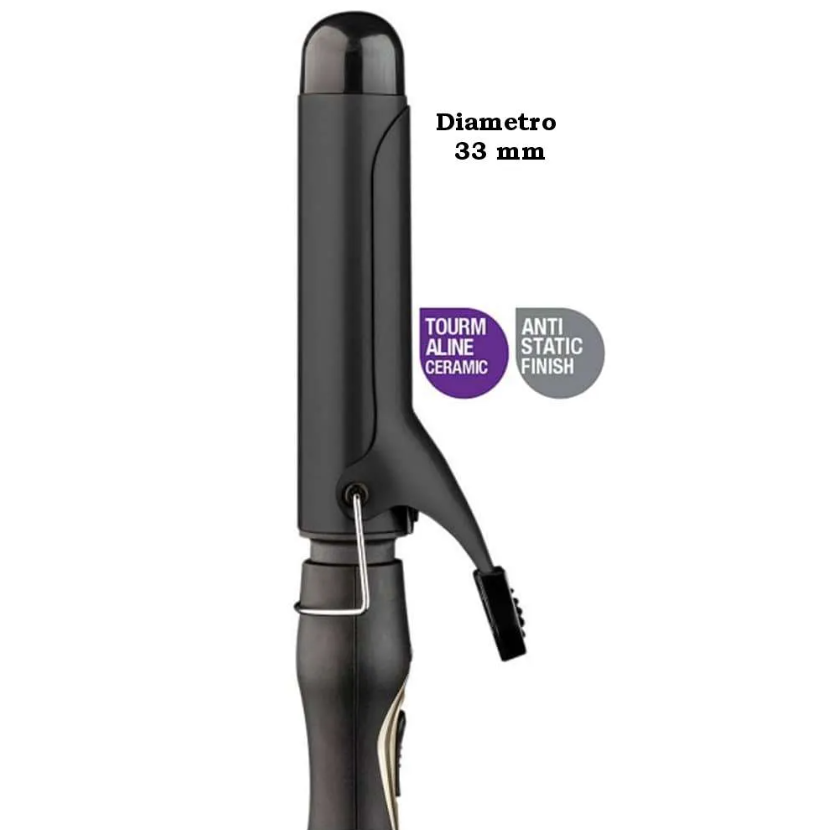 Questo materiale elettrico per capelli è il ferro black waves di xanitalia un ferro ideale per dei ricci perfetti e definiti Il ferro arricciacapelli Black Wave ha un diametro di 33 mm e ha un fusto in ceramica di tourmaline completo di pinza, che permette di arricciare i vostri capelli, senza danneggiarli garantendo delicatezza nello styling e proteggendo il capello. Premendo un solo tasto raggiunge una temperatura in soli 30 secondi. La punta isolata termicamente, facilita la piega prevenendo le scottature. Caratteristiche: non danneggia il capello punta isolante 25 – 29 Watt voltaggio: 220 -240V ~ 50/60 hz diametro: 19 mm raggiunge rapidamente la temperatura cavo rotante 360°