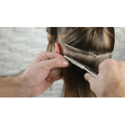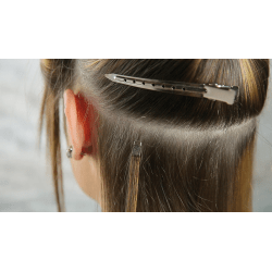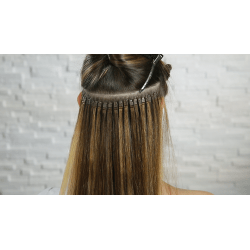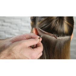 - Vengono quindi applicati ai capelli della cliente grazie a un micro anello di alluminio che viene bloccato ciocca per ciocca con una speciale pinza.