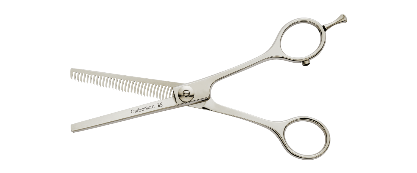 Una delle forbici sfoltire più amate è sicuramente LEADER Carbonium. Disponibile in due diverse misure (5,5 e 6,5) può essere a 28 o 32 denti curvi, che grazie al loro particolare disegno garantisce un taglio sfoltire netto e deciso.