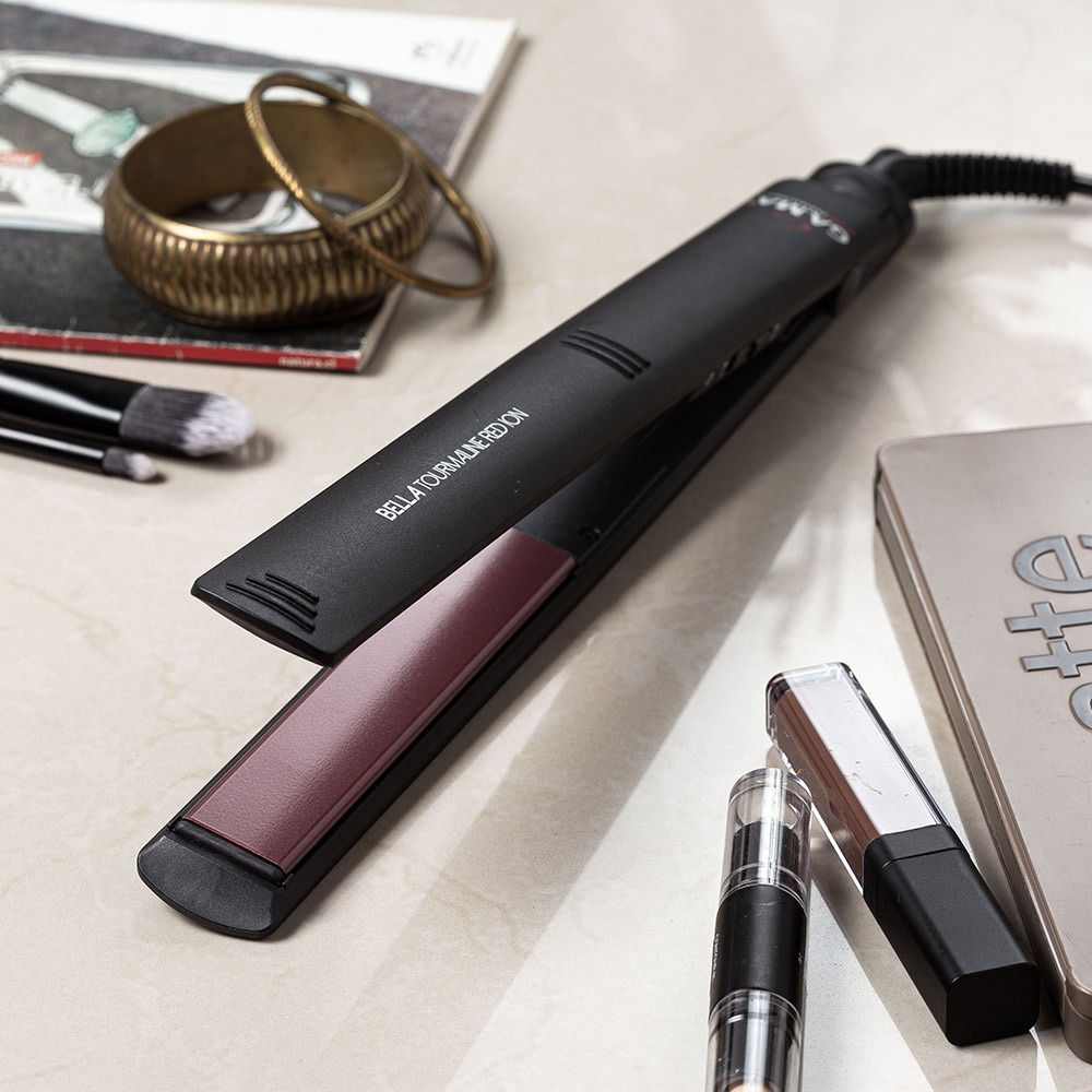 Bella Tourmaline Red Ion è una piastra per capelli che utilizza la tecnologia Micro Shine e il rivestimento in tormalina per creare acconciature brillanti e senza crespo.