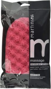 Martini Guanto In Bambu’ Esfoliante, la parte in loofah riattiva la circolazione con un’azione in peeling naturale, la parte in viscosa deterge dolcemente.