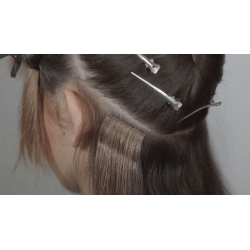 - Inoltre, lo speciale nastro adesivo coperto di capelli può essere tagliato in ciocche più piccole per personalizzare perfettamente le extension INVISIBLE.