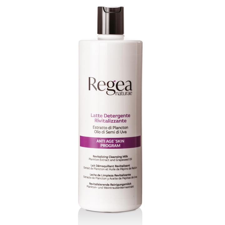 Il Latte Detergente all’estratto di plancton e olio di semi di uva è un prodotto che fa parte della linea completa rivitalizzante per la detersione e la cura della pelle matura, ANTI AGE SKIN PROGRAM.