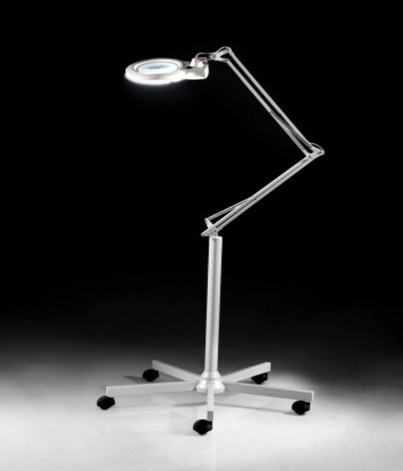 Lampada a luce fredda a stativo con ruote è dotata di lenti di ricambio a 3 e 5 diottrie.