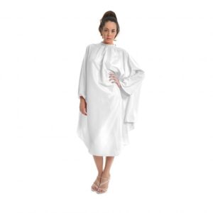 Mantella creata con tessuto OXI-TEX in risposta alle esigenze dei professionisti. Antistatica, leggera, traspirante ed elegante al tatto, ha nelle rifiniture e nel design innovativo la sua esclusiva funzzionalità. ampia ed abbondante sia nel retro che nel davanti, offre delle maniche per la cliente per dare una maggiore indipendenza pur garantendo un’ ottima copertura.
