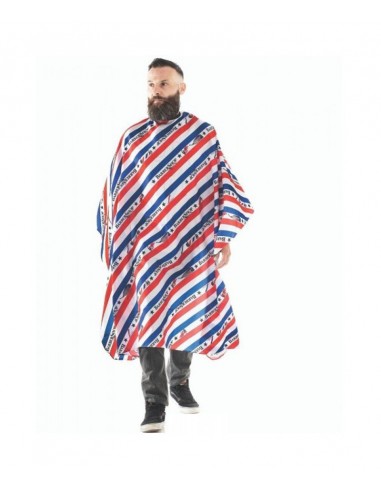 MANTELLA DA TAGLIO. Una graziosa mantella con strisce blu, bianche e rosse, per proteggere i tuoi clienti dai prodotti per acconciature e dalla caduta dei capelli durante il taglio.