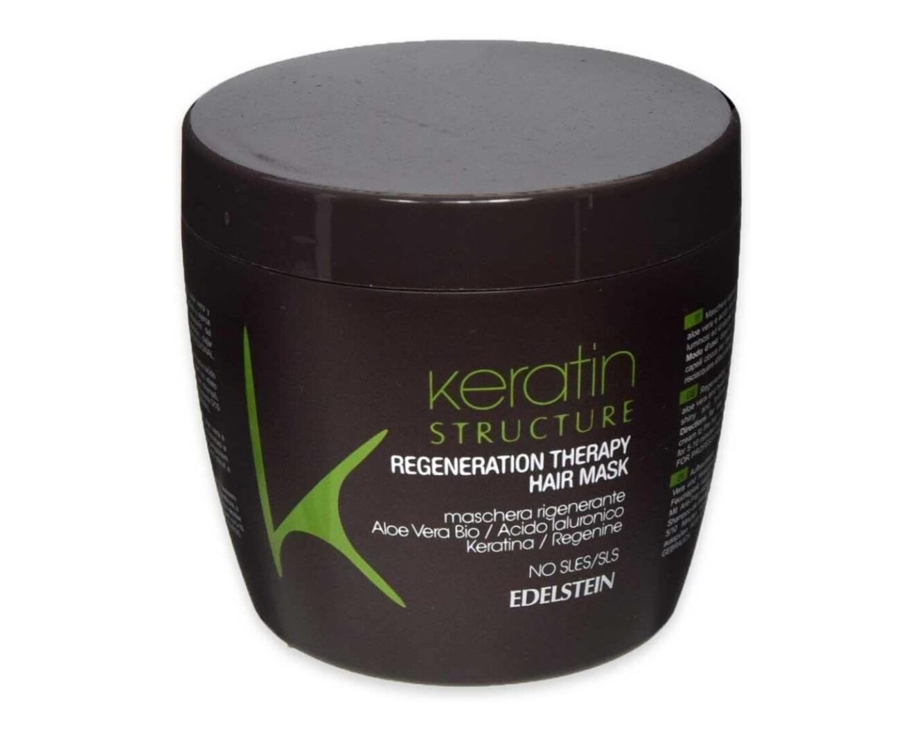 Maschera rigenerante con cheratina, regenine, aloe vera e acido ialuronico.