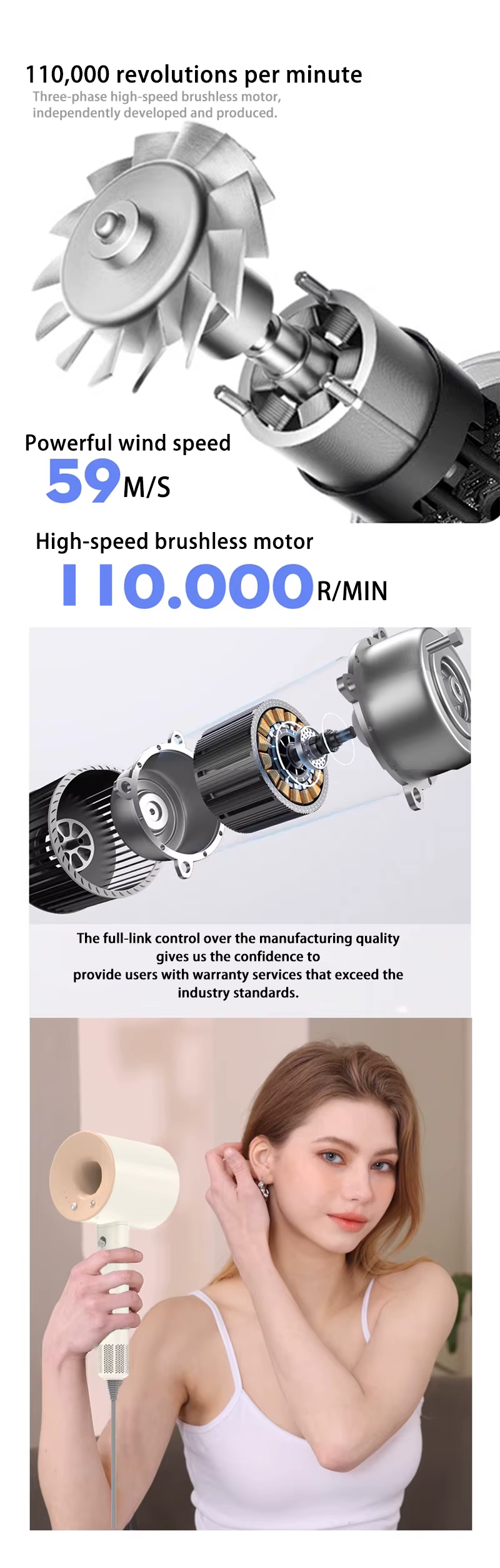 PHON ASCIUGACAPELLI Velocità 59m/s Silenzioso MODELLO DYSON 1600 w by ESTETICA FEMMINILE