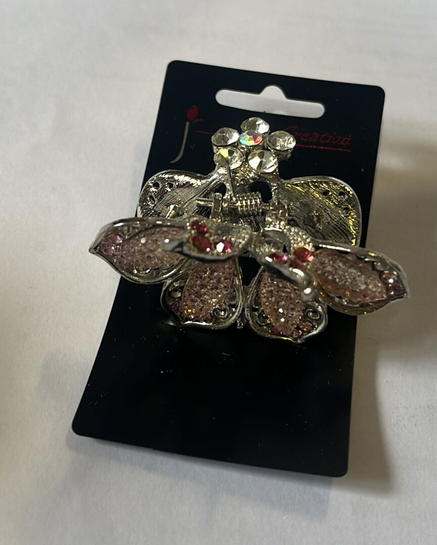 Pinza per capelli jewel con brillantini rosa