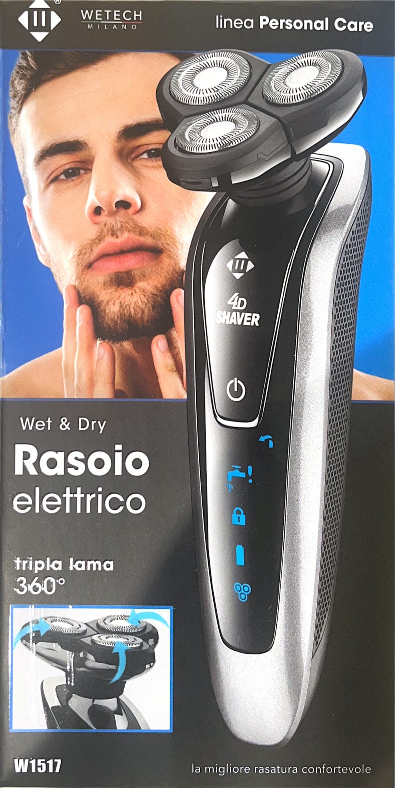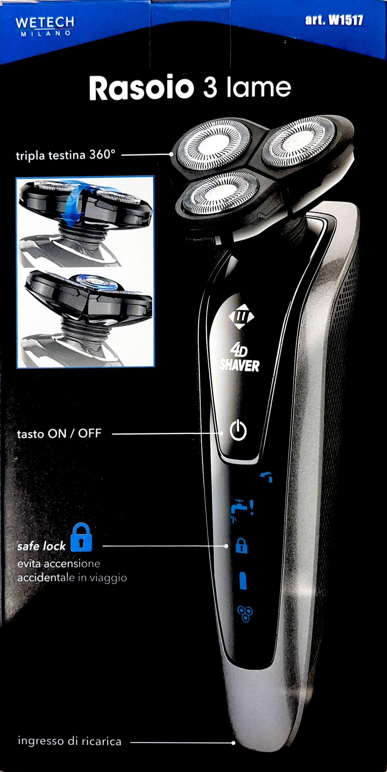 RASOIO ELETTRICO 3 LAME ROTANTI WATERPROOF WETECH MILANO