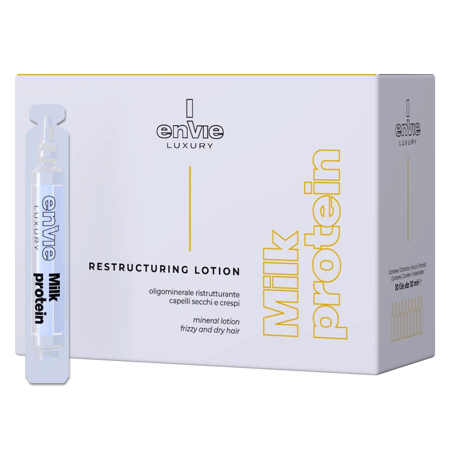Envie milk protein è una linea con proteine naturali del latte ideale per i capelli crespi e secchi. I condizionanti e le proteine contenute nei suoi prodotti rendono i capelli soffici e docili al pettine. I modellanti aiutano a lisciare i capelli e ad eliminare lo sconveniente effetto crespo, proteggendo e nutrendo al tempo stesso i capelli. La crema stirante senza ammoniaca permette di ottenere facilmente capelli lisci per circa 8 settimane senza rovinare la fibra capillare.