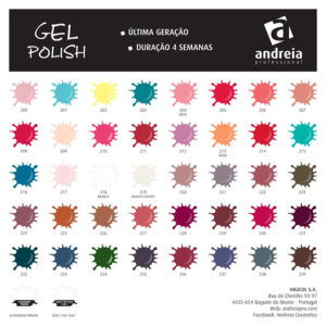 Questa nuova generazione di vernice semipermanente è disponibile in più di 120 colori, può essere catalizzata sotto una lampada a LED o UV, per 4 settimane di tenuta perfetta. Andreia è sinonimo di donna e bellezza. Questo marchio portoghese è impegnato per la qualità e l’innovazione.