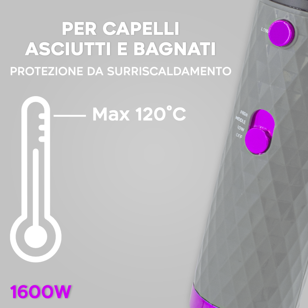 SET 6 in 1 Spazzola Elettrica PHON ASCIUGACAPELLI ARRICCIA E MODELLA by Estetica Femminile