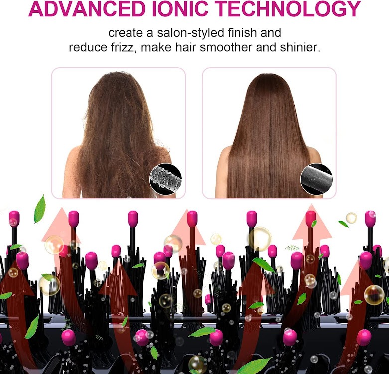 Spazzola volumizzante per asciugacapelli e styler ad aria calda professionale 2 in 1 anti-crespo.Combina perfettamente le funzioni di asciugacapelli convenzionale, piastra, ferro arricciacapelli e pettine per capelli.