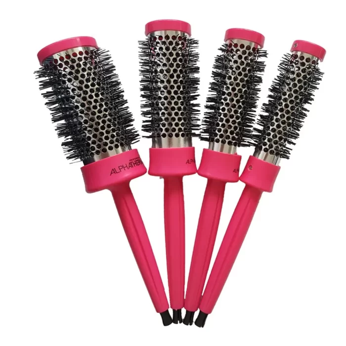 Le spazzole Alpha therm hanno fusto e cilindro rinforzati con viti di fissaggio che garantiscono un estrema resistenza anche per usi intensivi in salone. Le setole in nylon antibatterico sono resistenti alle alte temperature, districano e modellano le ciocche senza effetto antistatico. Il cilindro vuoto e areato rende la spazzola leggera maneggevole e riduce del 60% i tempi di asciugatura.