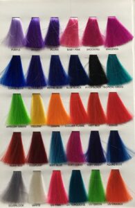 PURPLE, VIOLET, PLUME, BABY PINK, SHOCKING, MAGENTA, CORAL BLUE, ULTRA BLUE, ROYAL BLUE, BLUE BLACK, PITCH BLACK, TROPICAL GREEN, AFRICAN GREEN, YELLOW, DAWN, GOLDEN FLAME, HOT RED, ROUGE, FOXY RED, EGGPLANT, SOFT BLUE, SOFT CERISE, SOFT VIOLET, AZURE BLUE, SILVERLOOK, WHITE, UV PINK, UV TORQUOISE, UV GREEN, UV ORANGE, ROSE PINK, HEATER, LAVANDER, OCEANA, LIME