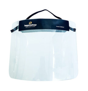 Visiera trasparente certificata CE per protezione personale degli occhi e del viso con fascia giro-testa singola.